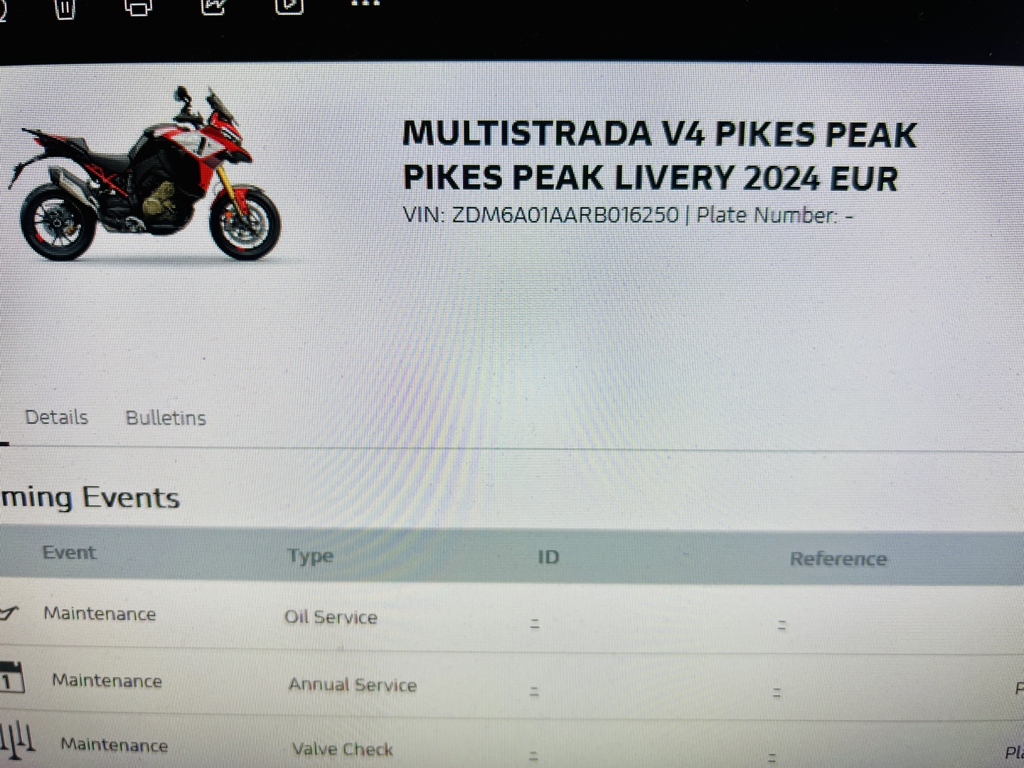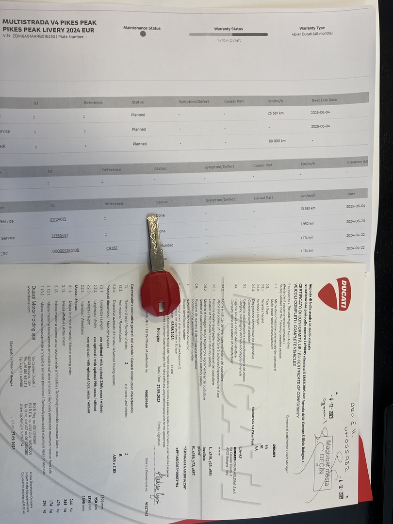 539999 Kč Vyrobeno: 2024 | Stav km: 120001. majitel, koupeno v Ducati Profi Moto, 2x klíč, el. servisní kniha, možný odpočet DPH (cena bez DPH 446.000Kč). Model 2024, přihlášeno do provozu 12/2023, záruka 4Ever Ducati do 12/2027 (možné prodloužit). Pravidelný roční servis Profi moto a následně Ducati Praha - naposledy 6/2025 v 10581km, zánovní sada pneu. Bez kosmetických vad a investic. Historie motocyklu doložitelná v Ducati Praha + bezeškodní průběh CEBIA. TK do 12/2029. Možnost výhodných splátek, kalkulace po mailu, schválení úvěru do 15 minut. Rádi vezmeme Váš motocykl protiúčtem, nacenění po mailu. Odvoz domů po celé ČR. Výkup motocyklů. Před každou prohlídkou prosím vždy volejte, abychom se Vám mohli plně věnovat. Těšíme se na Vaši návštěvu
